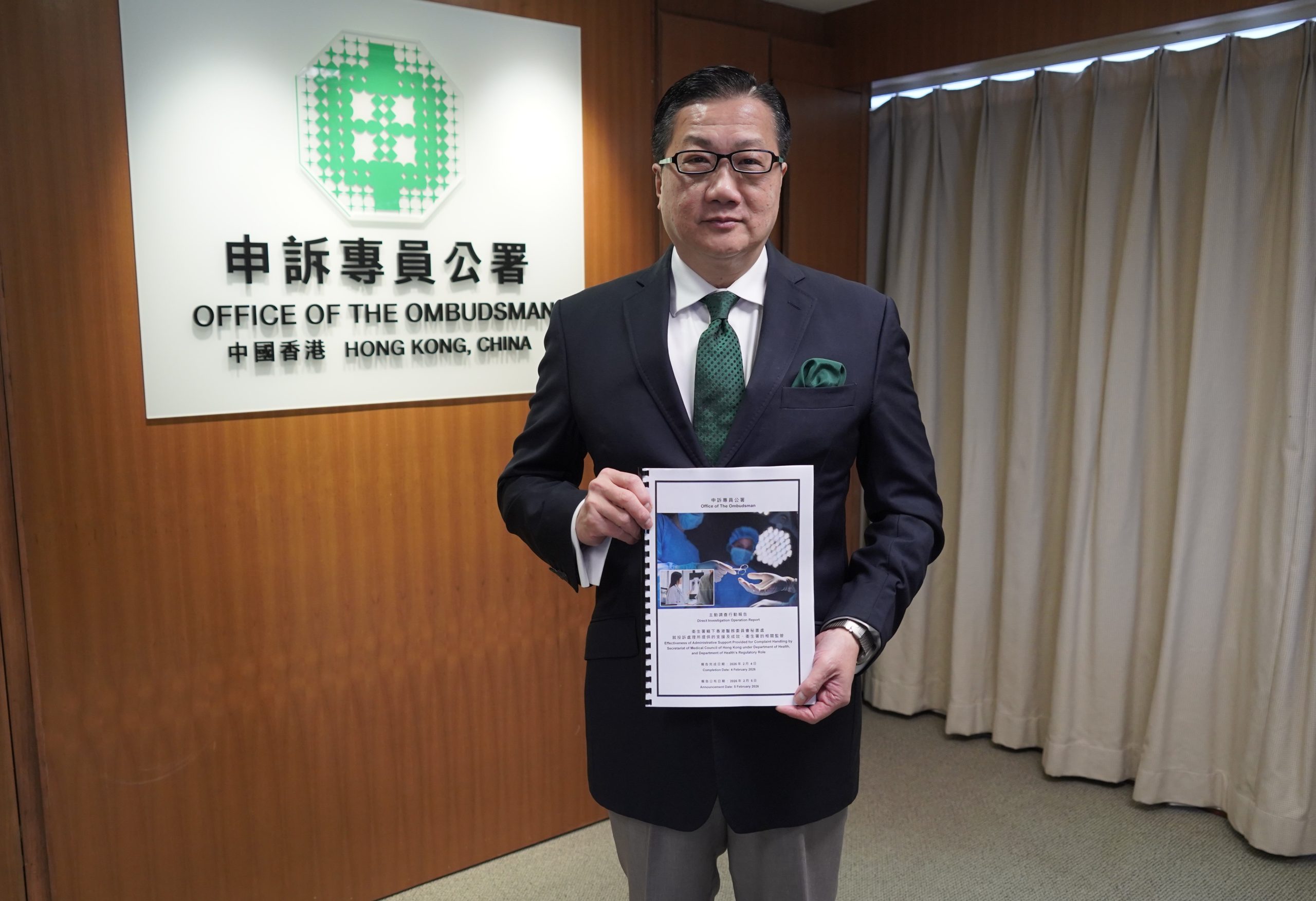 On 8 January 2026, the Ombudsman, Mr Jack Chan, announced the completion of a direct investigation operation into the work of the Government of the Hong Kong Special Administrative Region on landslide prevention and mitigation as well as management of government slopes, with 32 major recommendations for improvements made to the Civil Engineering and Development Department, the Lands Department, the Highways Department, the Water Supplies Department and the Architectural Services Department.
