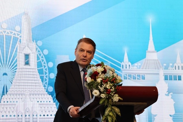 2023-07-14President of the National Assembly Speaker of the House of Representatives from 2019 to 2023 and Prime Minister of Thailand for two terms, Chuan Leekpai addressing conference delegates.